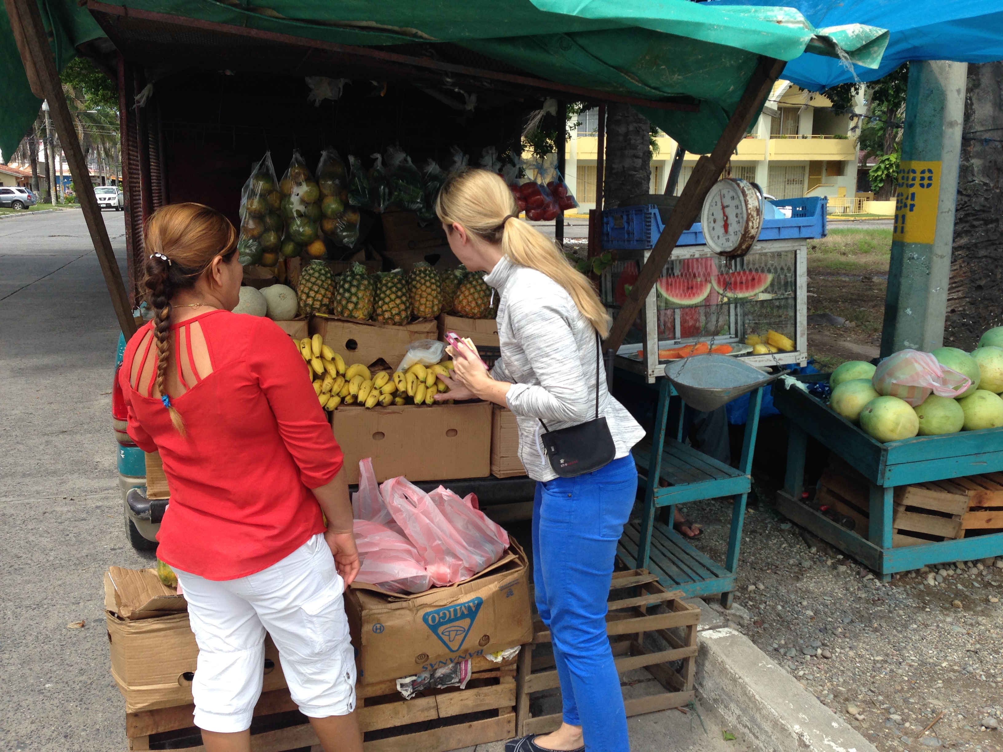IMG_8610 Published March 13, 2016 at 3264 × 2448 Heidi, buying some produce at ‘our favorite’ little stand in the city